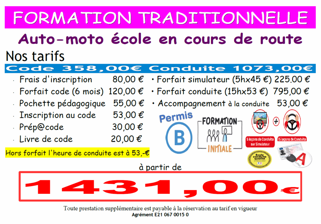 Les horaires de cours théoriques sont affichés dans l’agence. Ces horaires sont visibles de l’intérieur et de l’extérieur. L’auto-école se réserve, dans les limites imposées par les dispositions en vigueur, le droit de modifier les horaires des cours en fonction des nécessités de service.